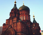 Magnificent and exquisite, the cathedral has a big onion dome which is in command of four lower tent roofs in different sizes in the four directions. There are stairs linking the four storeys and there are four doors. At the top of the front door lies the bell tower. A clock made of copper cast has seven notes, rung by a trained bellman with his hands and feet. The main structure is laid out like a Greek cross with the main hall topped with a huge green-tipped dome. It is a classic example of Russian building in China.